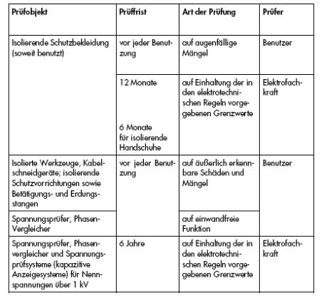 dass die Anforderungen der elektrotechnischen Regeln eingehalten werden. Hierzu sind Prüfungen nach Art und Umfang der in den