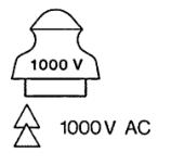 Symbol des Isolators oder mit einem Doppeldreieck und der zugeordneten Spannungs- oder Spannungsbereichsangabe oder der