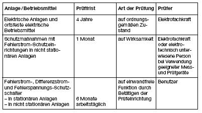 Elektrofachkraft und kann im Einzelfall zu anderen Prüffristen führen.