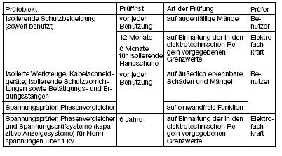 die Anforderungen der elektrotechnischen Regeln eingehalten werden. Hierzu sind Prüfungen nach Art und Umfang der in den